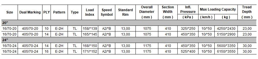 For every specific type and/or wheel, instructions and figures on load, inflation pressure, speed etc. are stated in the sidewall of the specific tyre by the manufacturer.