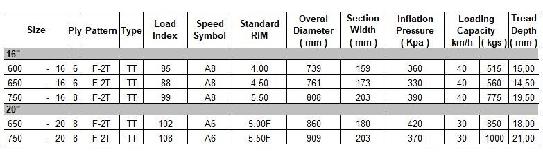 For every specific type and/or wheel, instructions and figures on load, inflation pressure, speed etc. are stated in the sidewall of the specific tyre by the manufacturer.
