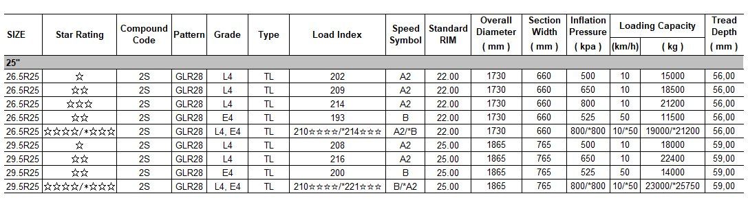 For every specific type and/or wheel, instructions and figures on load, inflation pressure, speed etc. are stated in the sidewall of the specific tyre by the manufacturer.