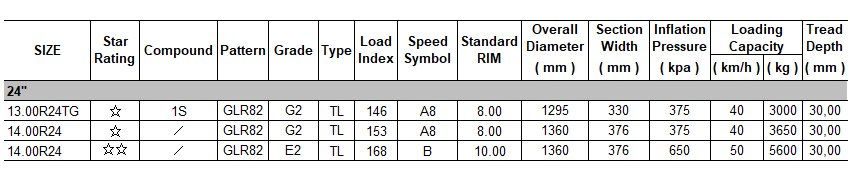 Special tread pattern with excellent traction, handling and ride comfort. Extra deep tread pattern for longer tread life.