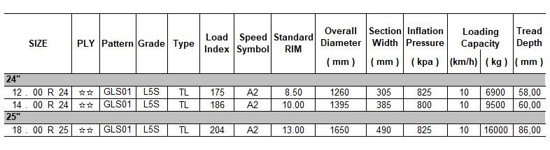 The GLS01 has a special tread compound that provides excellent resistance to severe conditions and achieves excellent performance even in the toughest terrain.