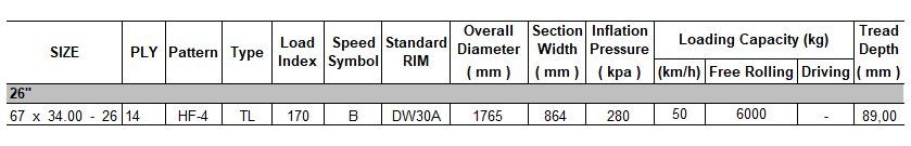 For every specific type and/or wheel, instructions and figures on load, inflation pressure, speed etc. are stated in the sidewall of the specific tyre by the manufacturer.
