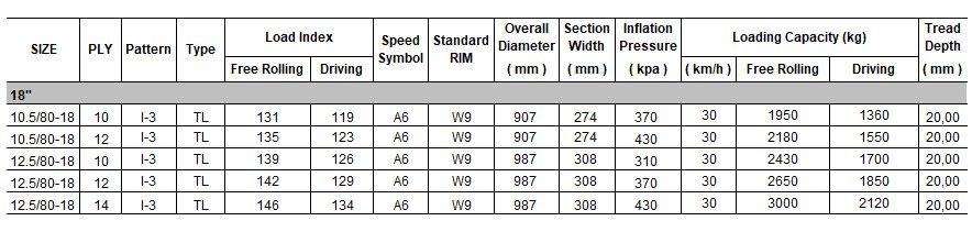 For every specific type and/or wheel, instructions and figures on load, inflation pressure, speed etc. are stated in the sidewall of the specific tyre by the manufacturer.