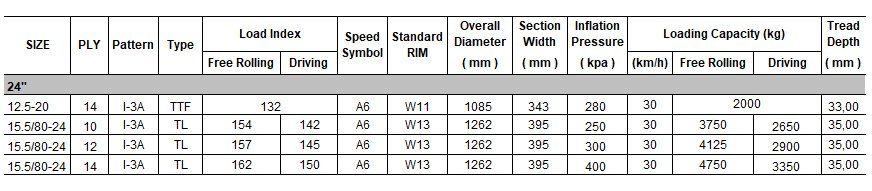 Good self-clean abilities make tyre suitable for all kind off the road services, where as the strong carcass ensures good power transmission as well as resistance to mechanical failures.