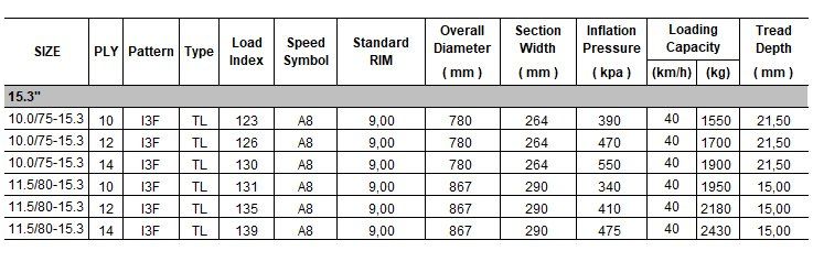 The Advance I-3F has a universal traction tread pattern designed for various on- and off-road agricultural applications in all weather conditions, while providing excellent traction to the drive wheels.