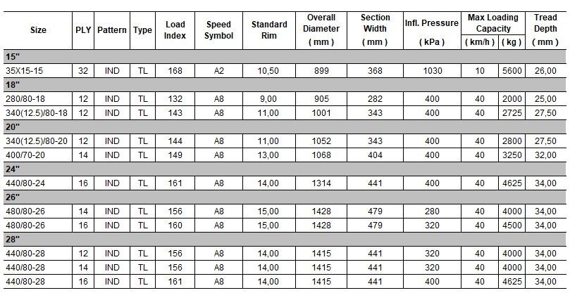 For every specific type and/or wheel, instructions and figures on load, inflation pressure, speed etc. are stated in the sidewall of the specific tyre by the manufacturer.