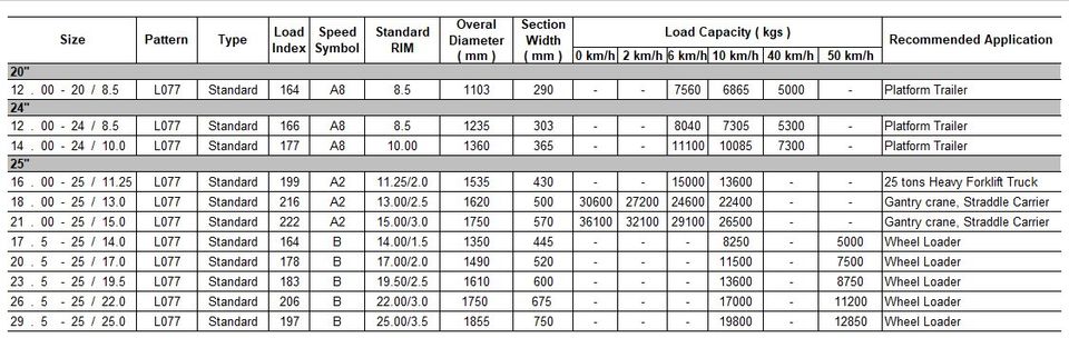 For every specific type and/or wheel, instructions and figures on load, inflation pressure, speed etc. are stated in the sidewall of the specific tyre by the manufacturer.
