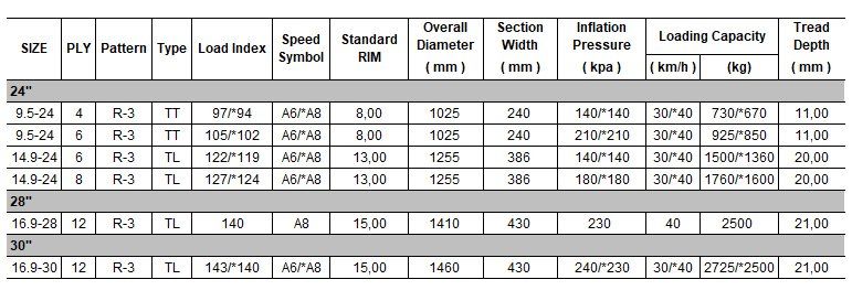 For every specific type and/or wheel, instructions and figures on load, inflation pressure, speed etc. are stated in the sidewall of the specific tyre by the manufacturer.