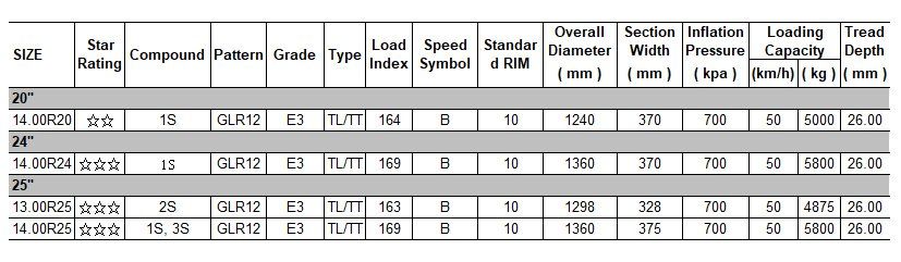 Spezielles Profildesign, höhere Traktion für Straßen, die von Bergbaufahrzeugen genutzt werden. Ein extra dickes Grundgummi schützt Gürtel und Karkasse, wenn der Reifen auf der Bergbaustrasse läuft, wobei ein extra tiefes Profil für eine längere Lebensdauer des Reifens sorgt.