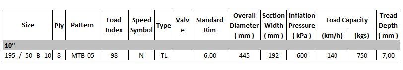 Für jeden spezifischen Typ und / oder jedes Rad sind Anweisungen und Angaben zu Last, Luftdruck, Geschwindigkeit etc. vom Hersteller in der Seitenwand des spezifischen Reifens angegeben. Im Zweifelsfall konsultieren Sie bitte die technischen Handbücher der ETRTO oder kontaktieren Sie uns. Montieren, befüllen Sie Reifen nicht mit Luft oder verwenden Sie keine Reifen / Rad-Kombination, bis alle möglichen Zweifel beseitigt sind.