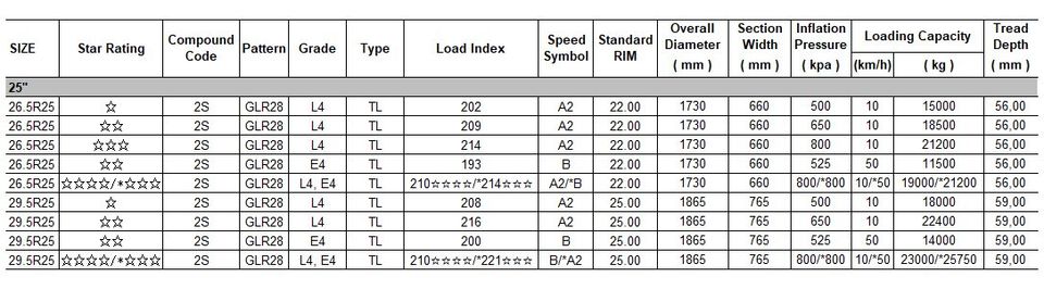Für jeden spezifischen Typ und / oder jedes Rad sind Anweisungen und Angaben zu Last, Luftdruck, Geschwindigkeit etc. vom Hersteller in der Seitenwand des spezifischen Reifens angegeben. Im Zweifelsfall konsultieren Sie bitte die technischen Handbücher der ETRTO oder kontaktieren Sie uns. Montieren, befüllen Sie Reifen nicht mit Luft oder verwenden Sie keine Reifen / Rad-Kombination, bis alle möglichen Zweifel beseitigt sind.
